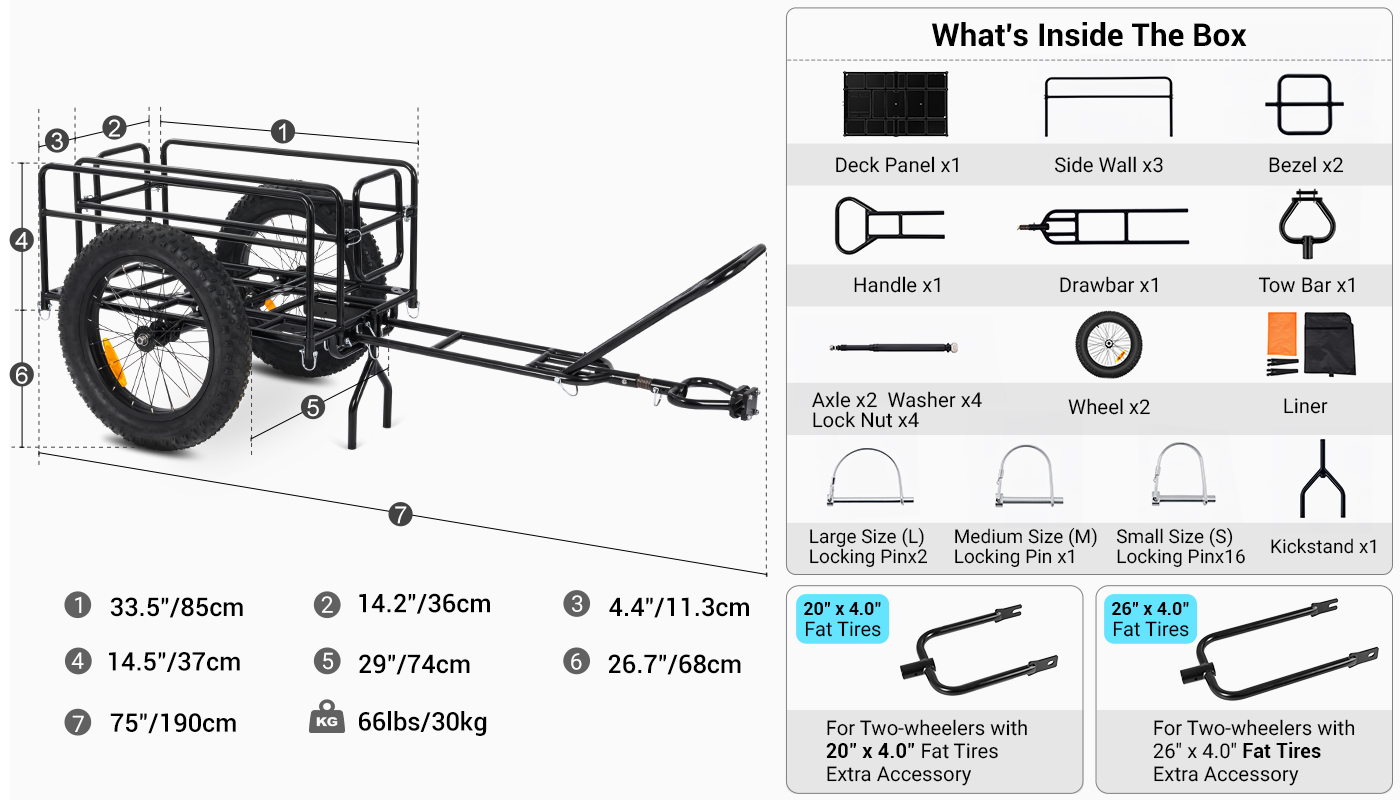Feature / Model Electric Trike Trailer (Standard) 20” Fat Tire Electric Bike Trailer  26” Fat Tire Electric Bike Trailer