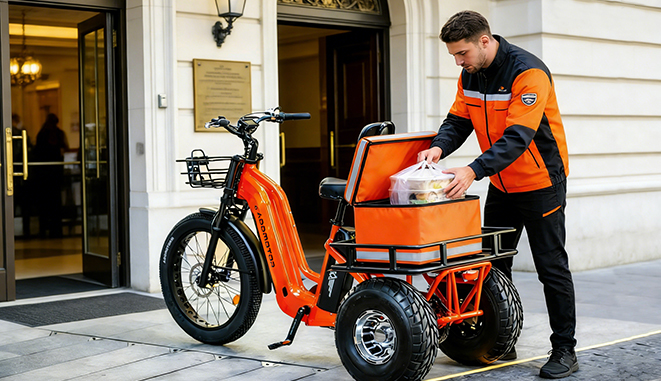 Mobile vendors, maintenance contractors, and service professionals rely on cargo ebikes for cost‑effective operations. Landscapers transport tools, pet groomers carry equipment, and market vendors load entire booth setups onto the cargo deck. The trike’s professional appearance and reliability enhance business image while reducing operating costs compared to vans or trucks.