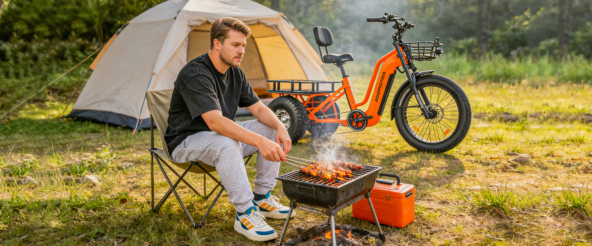 Adventure cyclists use cargo trikes for camping, fishing, hunting, and long‑distance touring. The fat tires handle sand, gravel, and dirt, while the long range supports full‑day excursions. The quiet motor preserves natural environments and avoids disturbing wildlife.